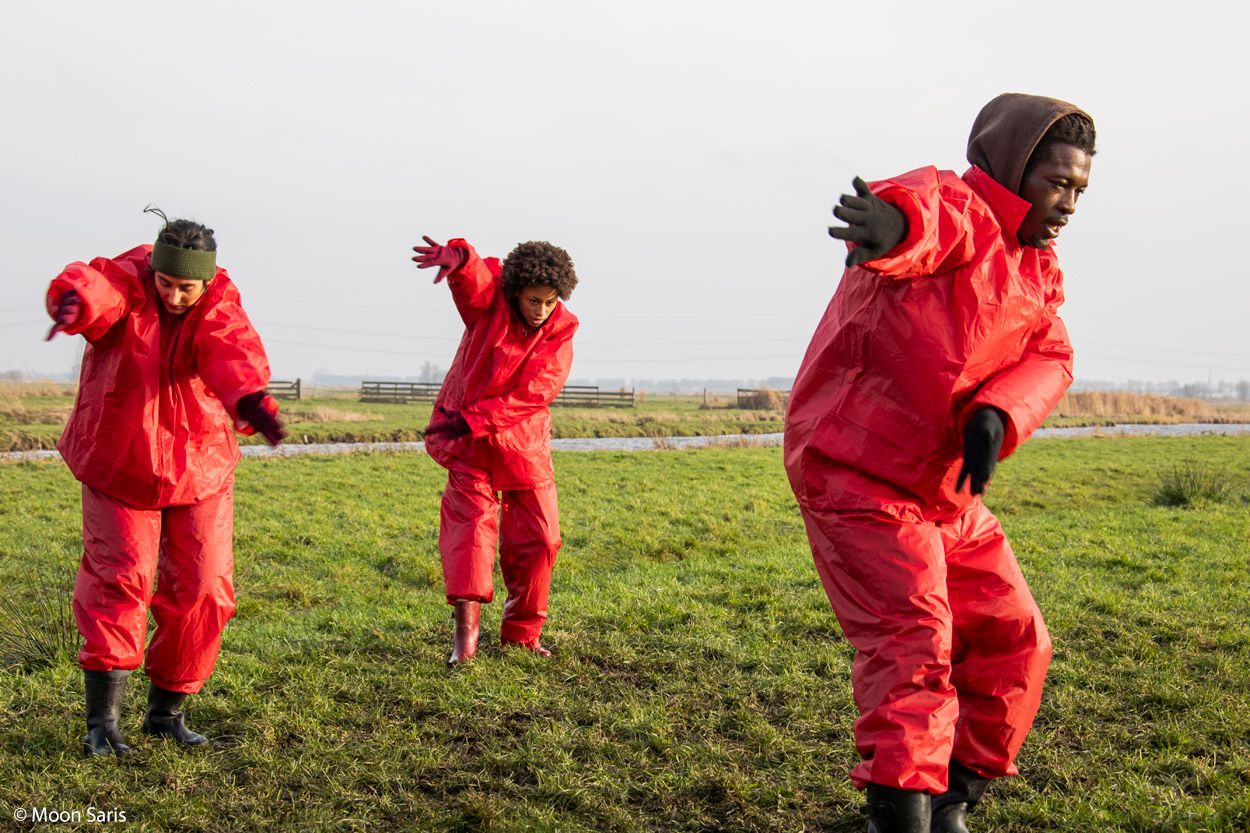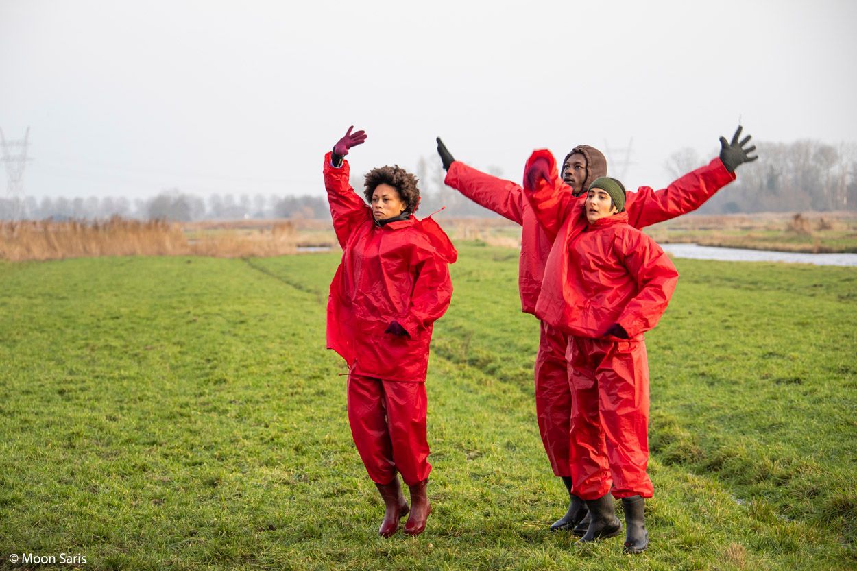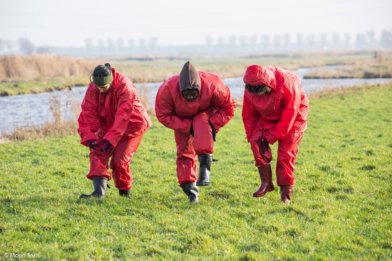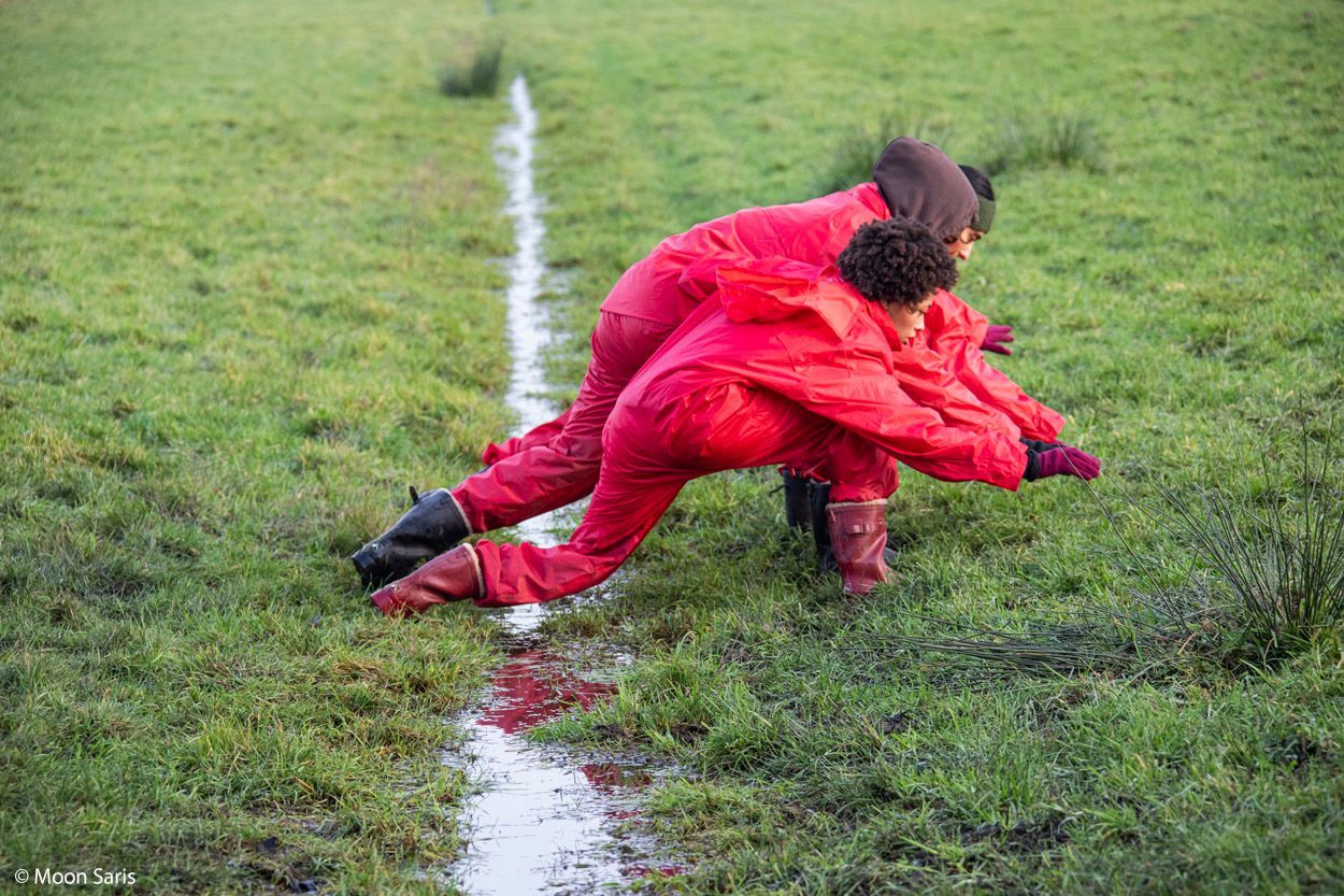 Between ditches and ponds memories are given a place to exist. From a first sign of life, a presence flows that cuts through the silence of the meadow. Three dancers take you on a journey, connected by one strong yet vulnerable current.